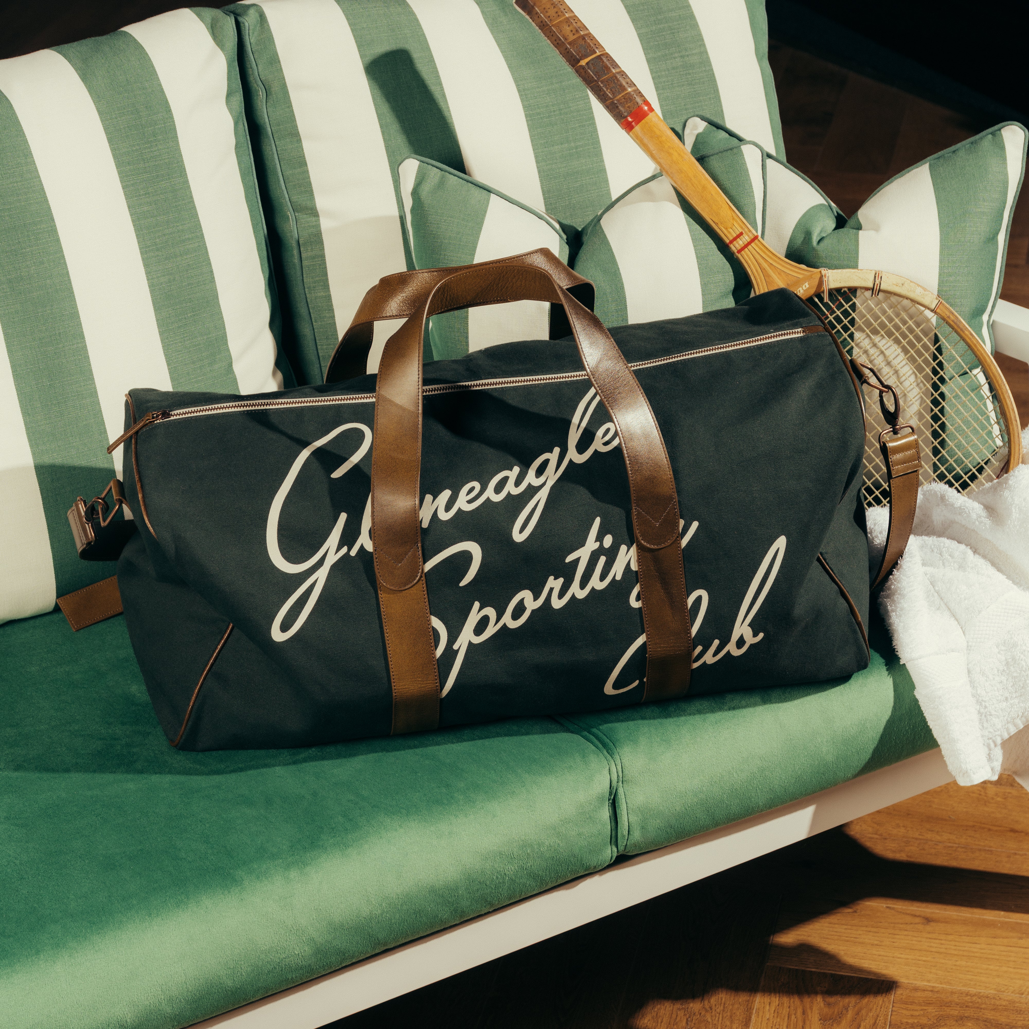 Carry effortless style to the courts with our Duffel Bag, the perfect blend of function and flair. Available in Green or Natural, it’s a must-have for sporting days and weekend adventures alike.